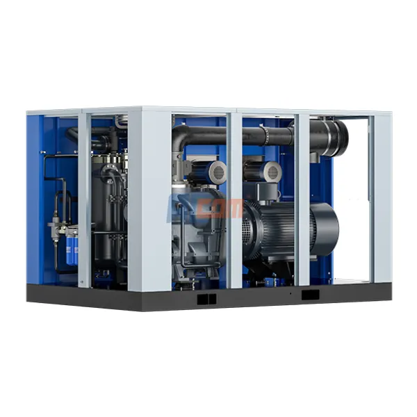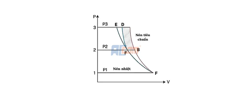 So với máy nén tiêu chuẩn, máy nén trục vít hai cấp có hiệu suất tốt hơn, có thể tiết kiệm hơn 10% năng lượng so với máy nén tiêu chuẩn cả hai đều hoạt động ở mức tải 100%.